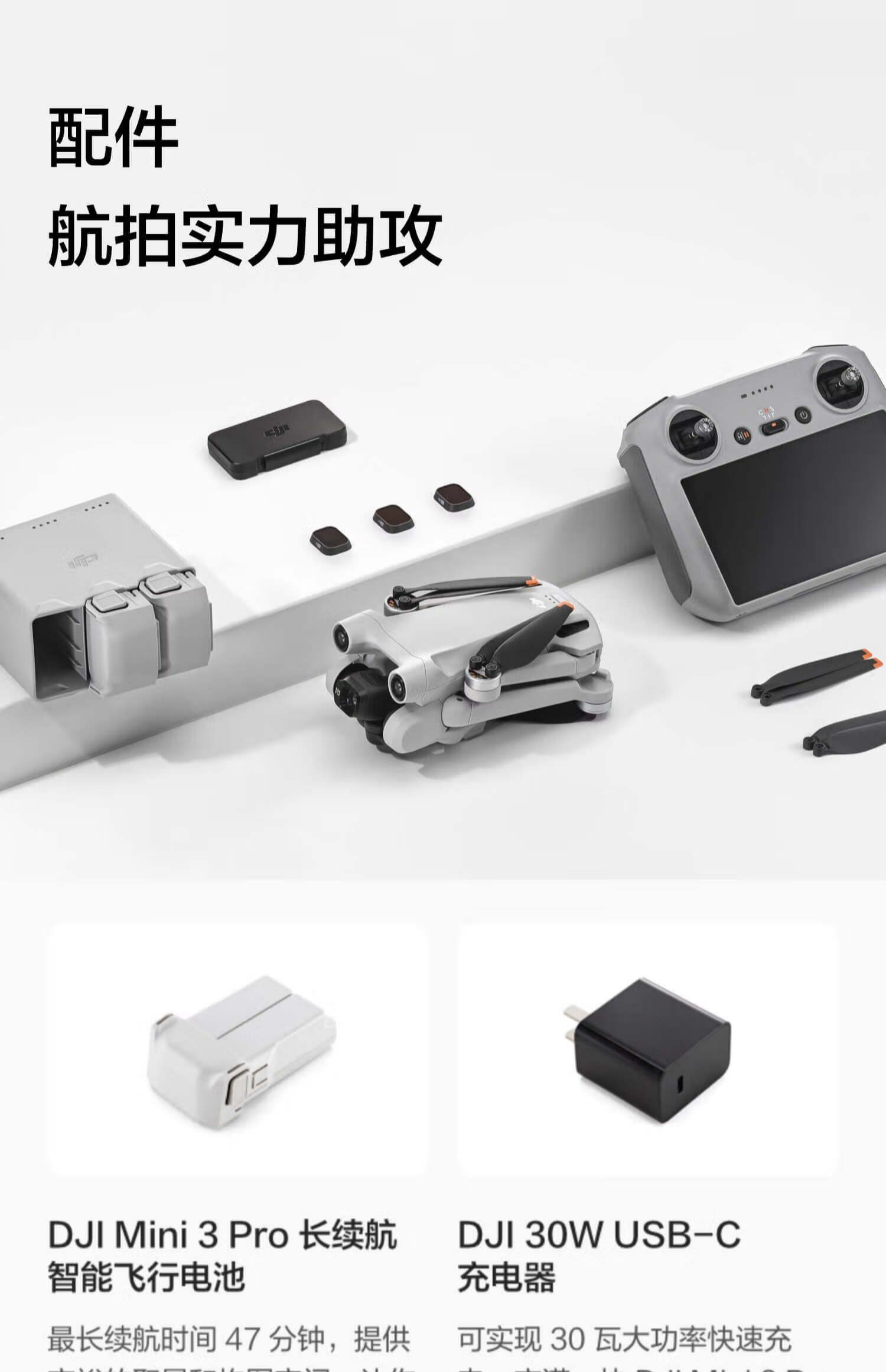 大疆 DJI Mini 3 Pro (DJI RC 帶屏遙控器版) 輕巧型航拍飛機(jī) 智能跟隨飛行器 專業(yè)無損豎拍